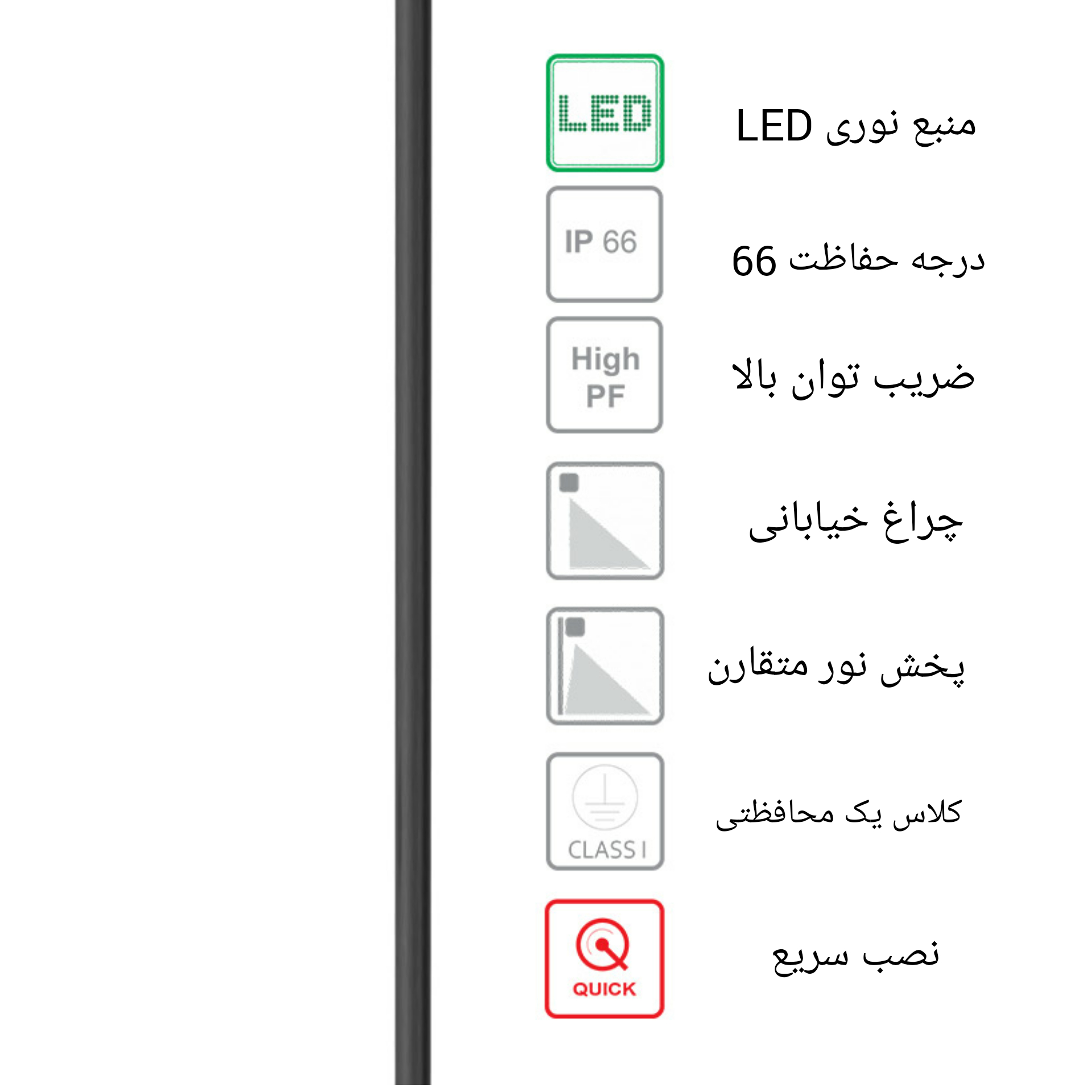 مشخصات فنی چراغ خیابانی مدل ستاره L گلنور