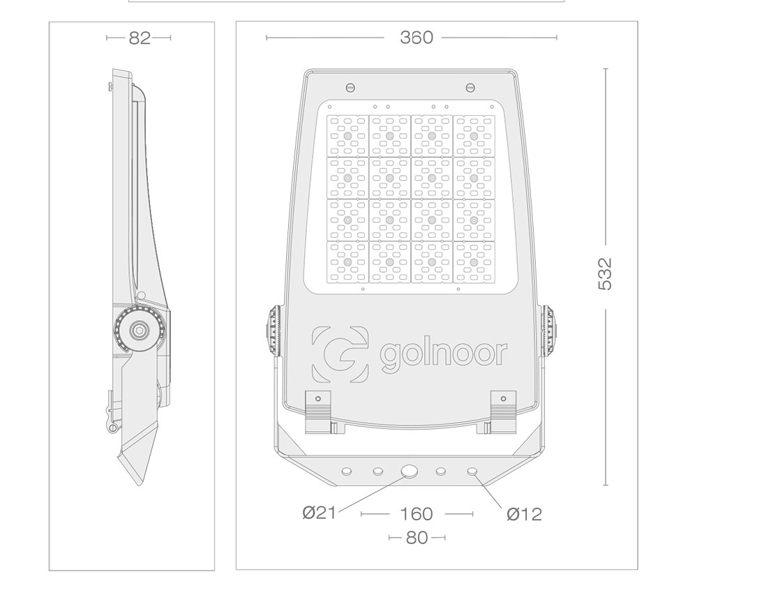 نورافکن 110/165 وات آریل 2 گلنور مناسب برای استفاده در محوطه های وسیع ، برج های روشنایی ، سالن ها و میادین ورزشی می باشد. نورافکن LED آریو 2 گلنور در برابر نوسانات گذرا و ماندگار ولتاژ شبکه از استقامت بالایی برخوردار است و بدلیل وجود ماژول ‌های استاندارد ژاکا ، تعمیر و و نگهداری آن بسیار آسان می باشد . این نورافکن دارای طراحی زیبا و جنس بدنه ی آلومینیوم دایکاست که جداره نورگذر آن از جنس شیشه سکوریت شده می باشد که در برابر ضربه مقاوم است. نورافکن 110/165 وات آریو 2 گلنور با درجه حفاظت IP66 مقاوم در برابر خوردگی و تغییرات مکانیکی و قابل استفاده در شرایط دمایی و آب و هوایی متفاوت می باشد همچنین این محصول در برابر شوک الکتریکی محافظ و با درجه حفاظت IK07 مقاوم در برابر برخورد اجسام سخت است .